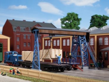 Unser Vorbild wurde von Aue nach Oberwiesenthal zur Fichtelbergbahn umgesetzt. Er dient zum Be- und Entladen von Gütern und auch zum Heben und Verladen der Schlacke. Die Laufkatze ist beweglich. Bei Gleisen mit Bettung, Höhe durch Unterbau ausgleichen. Lichte Durchfahrtshöhe ohne Gleis 75 mm Lichte Durchfahrtsbreite 112 mm